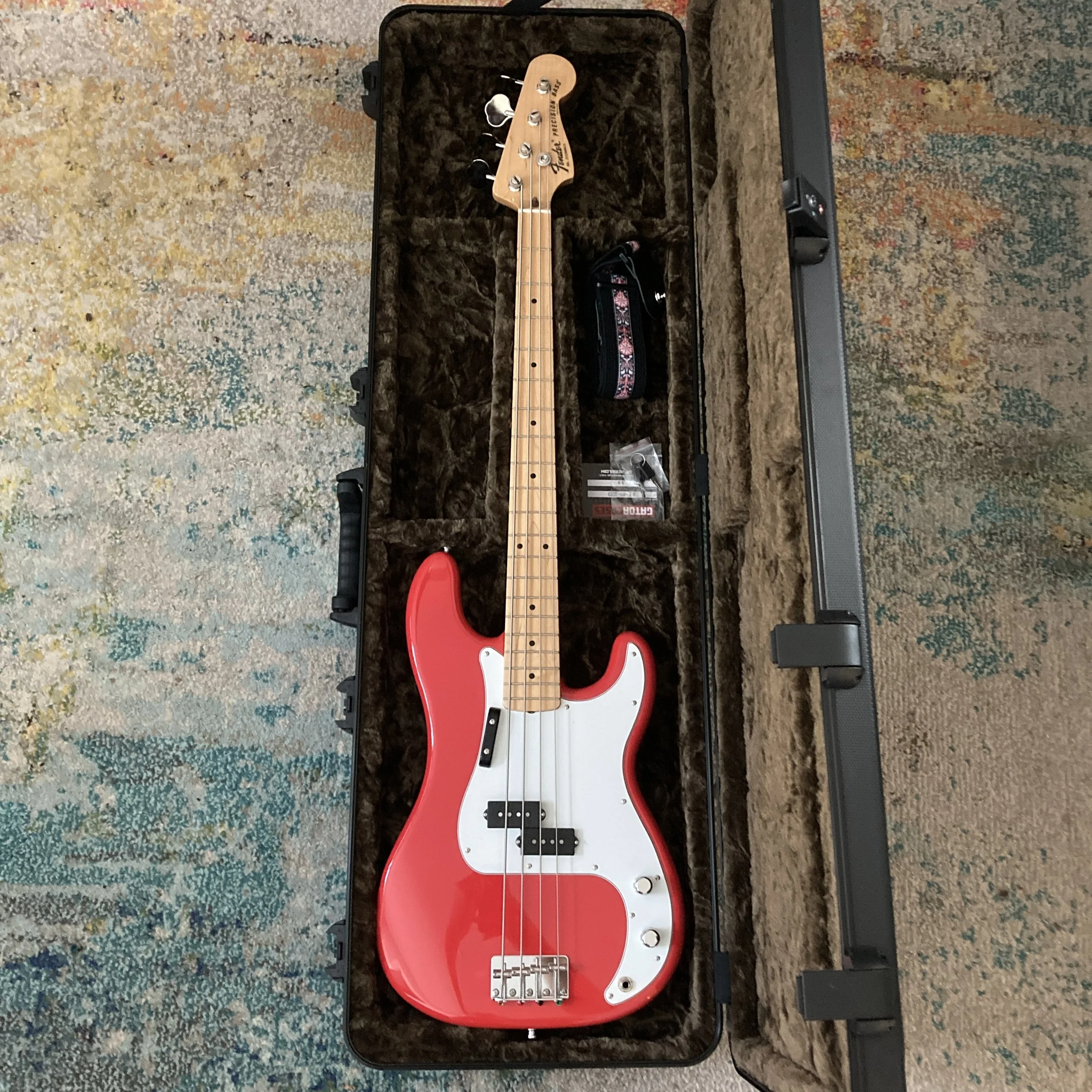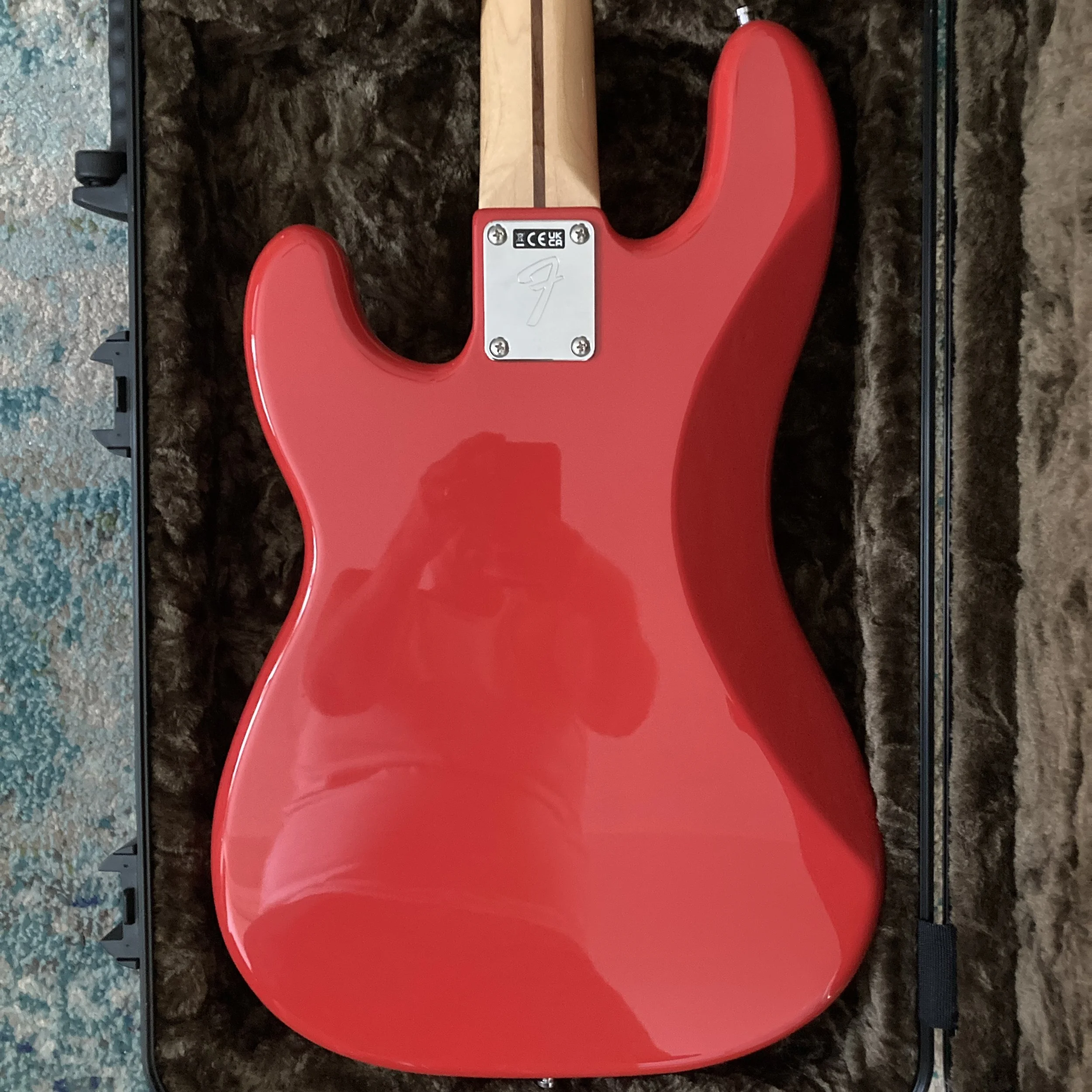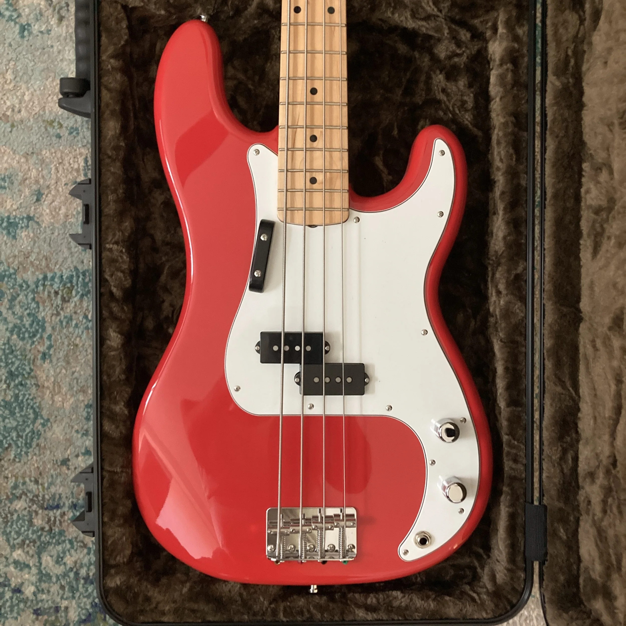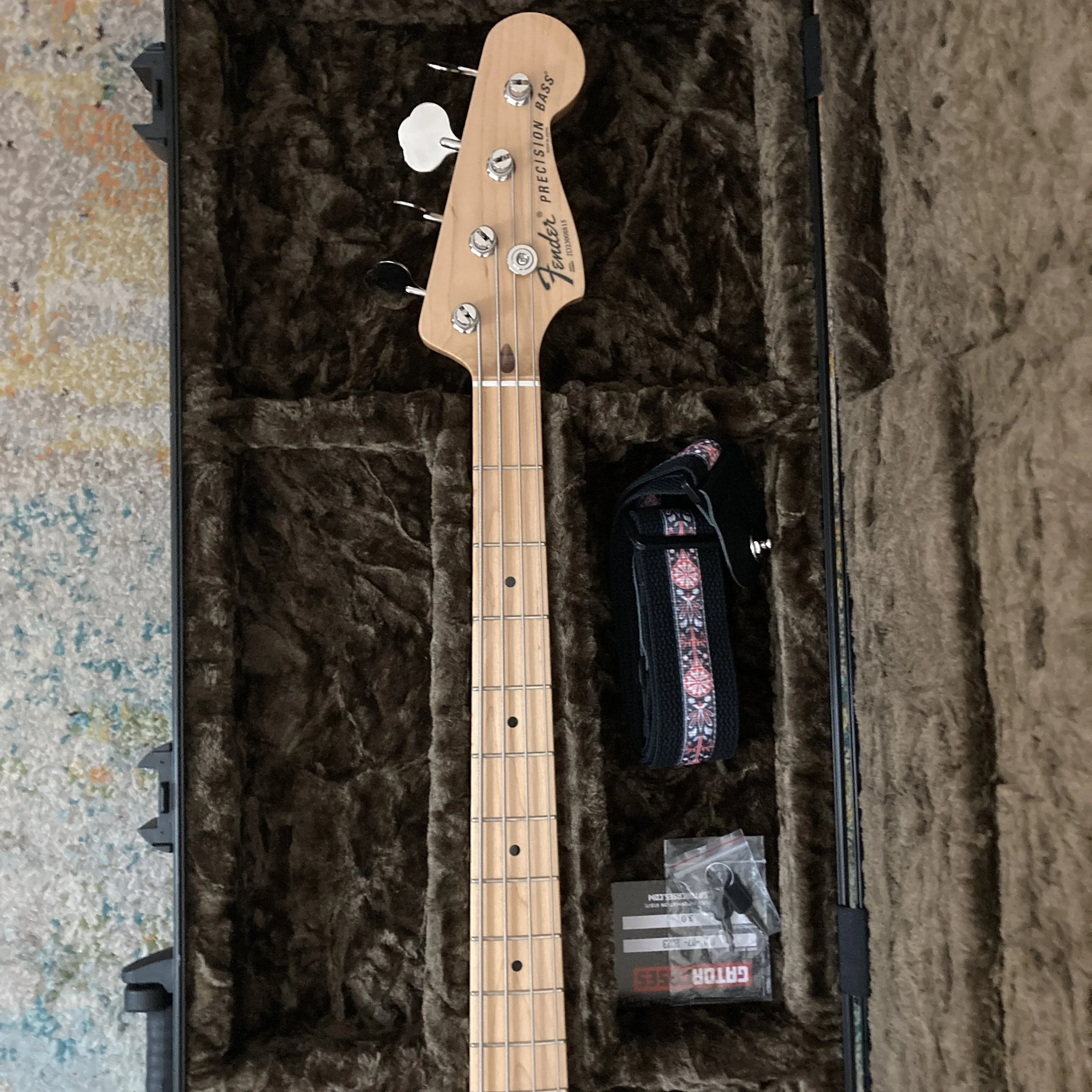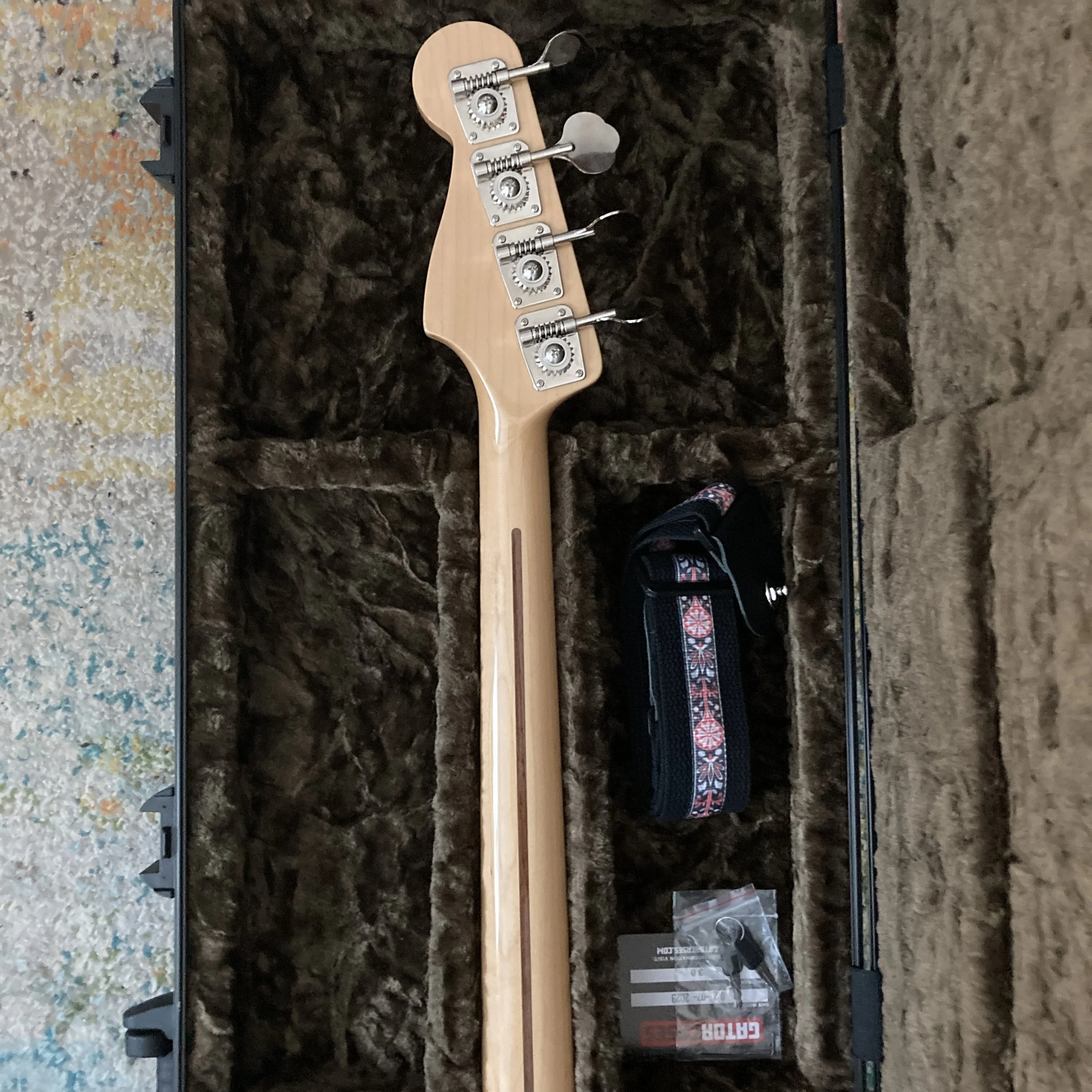 I’m selling off basses to justify getting an Ernie Ball Music Man :) I got this off of the first owner, all genuine play wear from gigs and studio work across North Texas. You’d have to pay a lot extra from custom shop today to get this kind of gorgeous figuring in the maple neck, which has a great feel that has satin’d from age, and Leo Fender’s upgraded P-bass sound from the MFD pickup. Body wood is alder, Saddle Lock bridge, rosewood fretboard over maple neck, I hope you enjoy it!